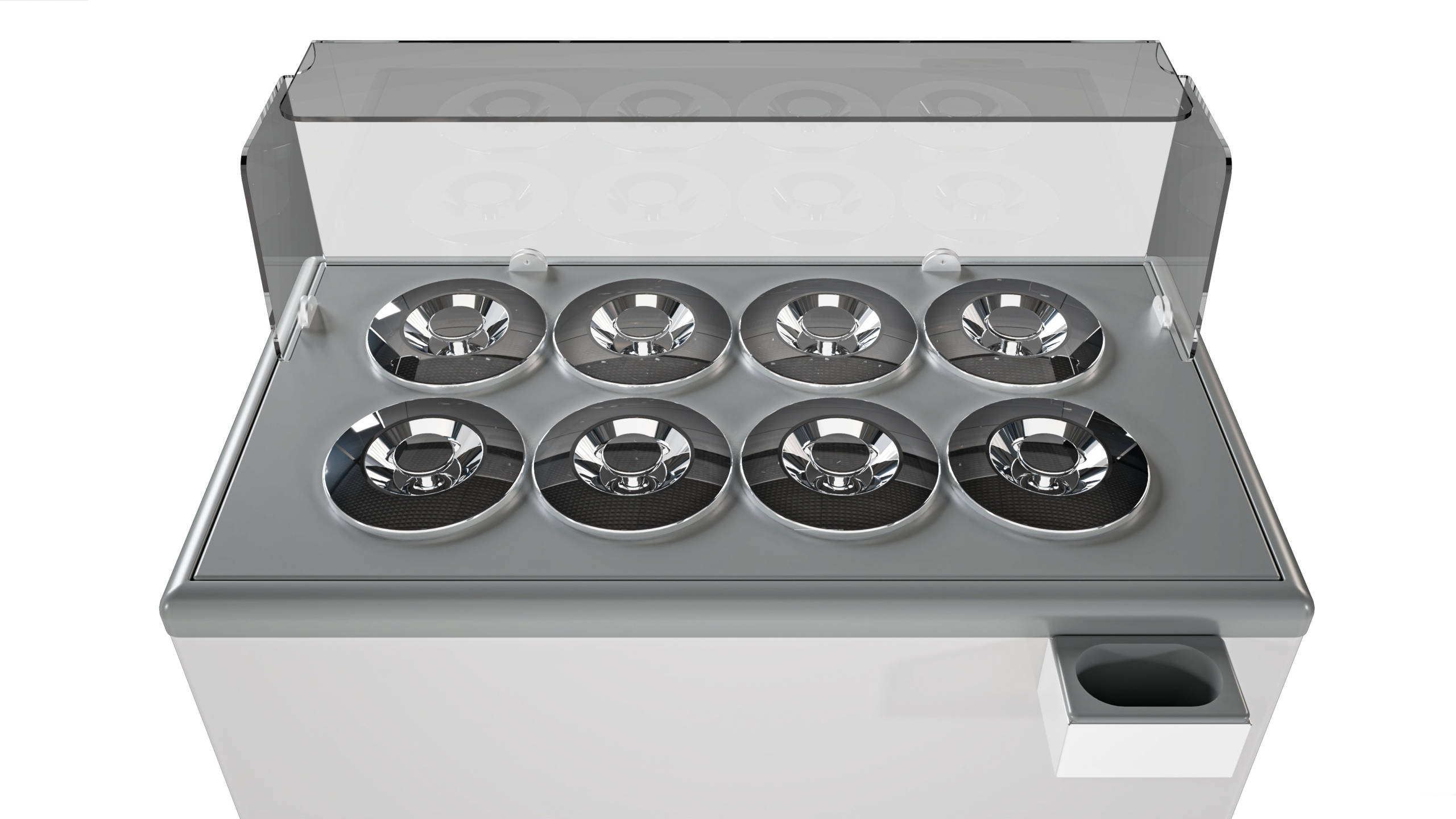 Konserwator do lodów o prostym i eleganckim designie na kuwety typu pozzetti nawiązujące do tradycyjnych lodów rzemieślniczych